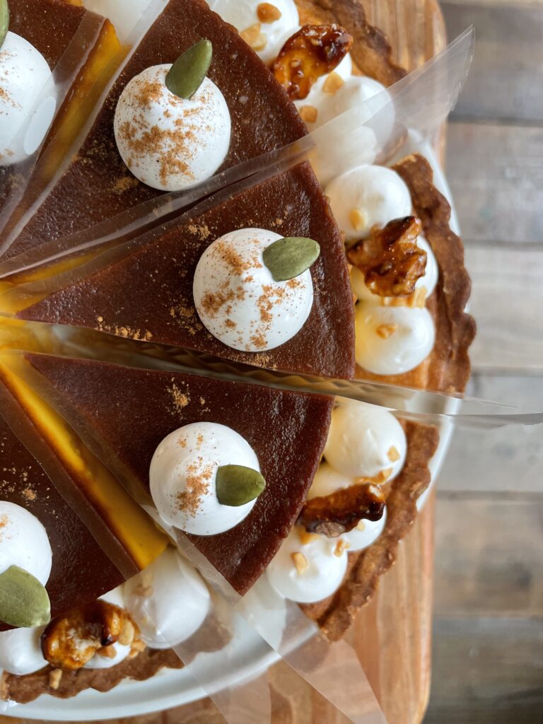 パンプキンプリンタルト。栗かぼちゃを使用しています。