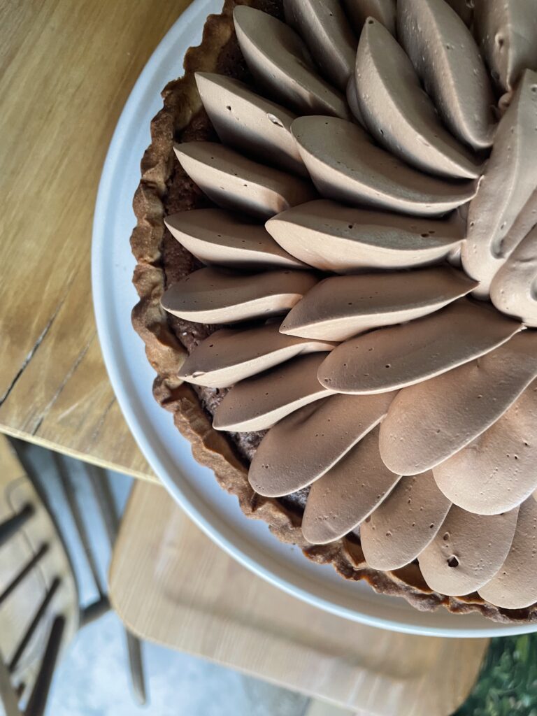 スイートチョコとビターチョコの配合が絶妙なチョコレート系タルト。