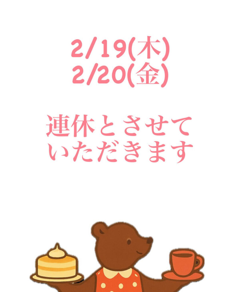 リトルベアーズは今週連休とさせていただきます。