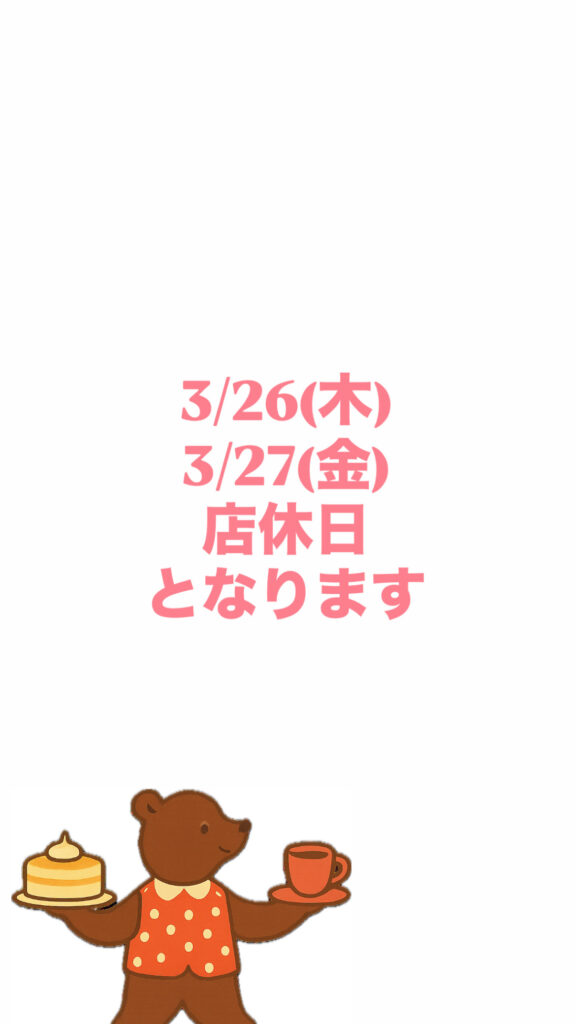 今週は木曜と金曜をお休みとさせていただきます。